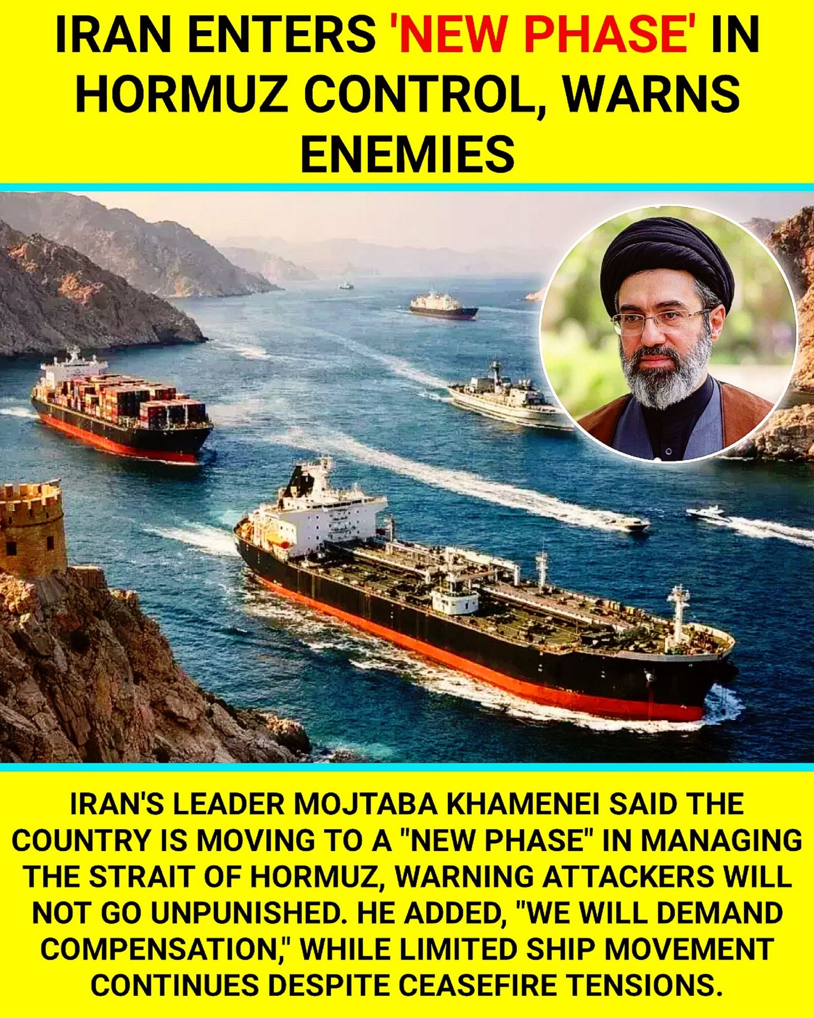 होर्मुज जलडमरूमध्य फारस की खाड़ी और ओमान की खाड़ी को जोड़ता है। यहां से गुजरने वाले तेल टैंकर वैश्विक अर्थव्यवस्था को प्रभावित करते हैं। ईरान पहले से इस पर नियंत्रण रखता है, लेकिन मोजतबा का बयान अधिक सख्ती का संकेत देता है। हाल के संघर्ष में हुए नुकसान के लिए “मुआवजा मांगेंगे” – अगर न मिला तो दुश्मन संपत्ति जब्त या नष्ट करेंगे। यह “नया दौर” संरचित नियंत्रण का वादा करता है, जो तेल कीमतों में उथल-पुथल ला सकता है।